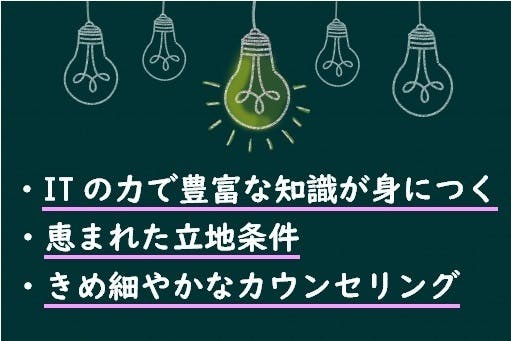 先進的なITによりスキルを身に付けられること、カフェのような気軽に立ち寄れる雰囲気、仲間の暖かさにより人生やキャリアを見直すためのポジティブな時間が過ごせます。