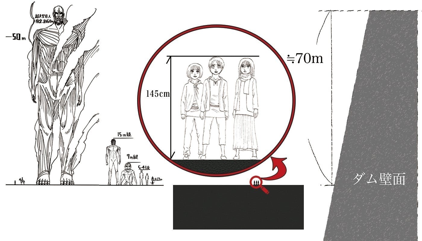 大山町にある堤高90mほどのダム壁面を、ウォール・マリアに見立て単行本1巻で、エレン達があの巨人を目にした気持ちを、『進撃の巨人』という作品の大きさを自身の目で感じていただく最高の舞台。