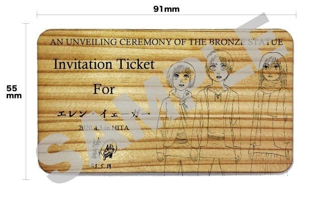 除幕式の招待券は、地元日田の特産品である日田杉を使ったプレートに、