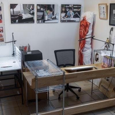 諫山先生が最初に使っていた作業机やギャラリーなどを設置しています。