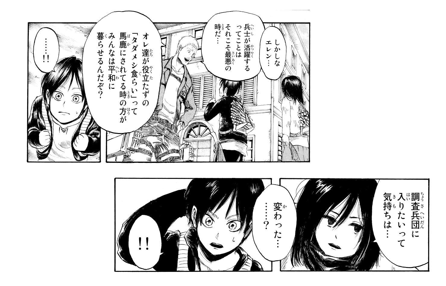 エレンは、仮初めの平和に満足し外の世界へ出ることを諦めた人々に違和感を覚える。