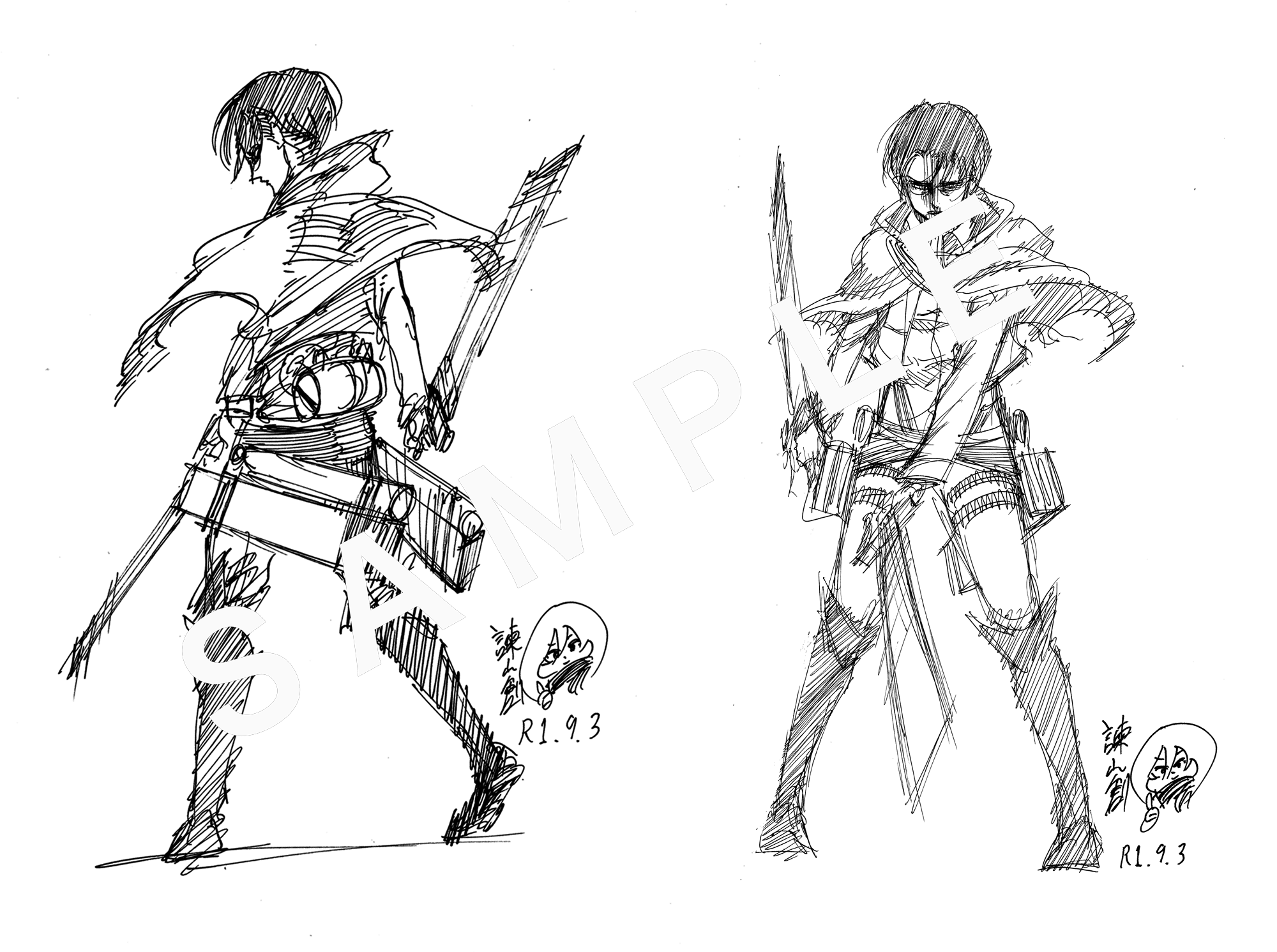 諫山先生が本プロジェクトのために描き下ろしたオリジナルのラフ画5枚を、