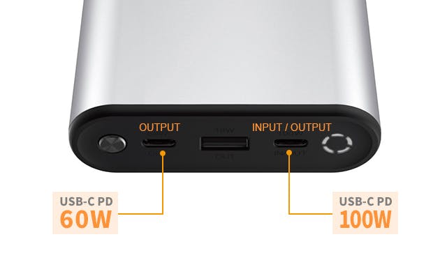 最大出力100WのUSB-C PDポートはMacBook Pro 15インチや、ノートパソコンにも充電できるほどの高出力です。