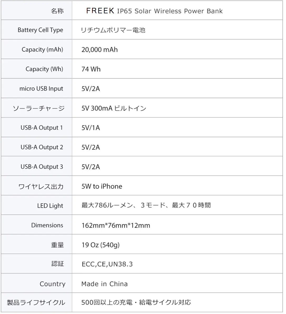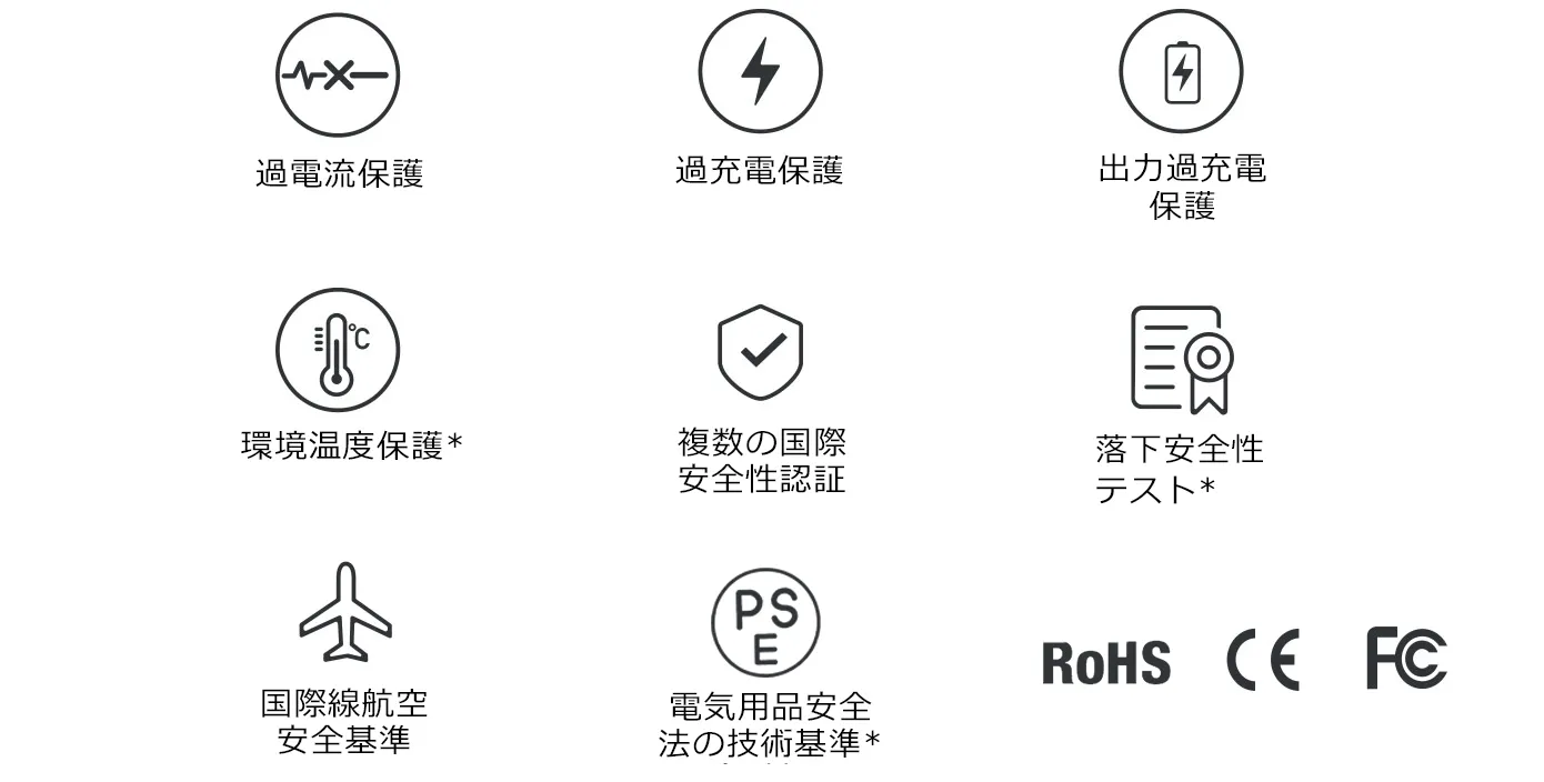 大容量20,000mAhが魅力です。また寿命も長く安全装置も備わっています。日本だけでなく、様々な国際基準を満たしています。