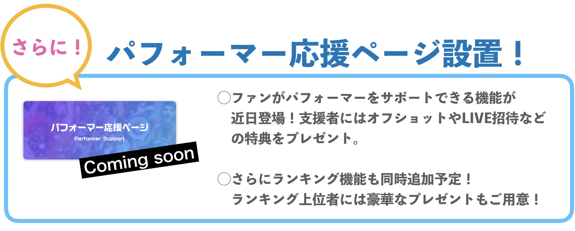 ☆パフォーマーもファンにも、喜んでもらえる追加機能をドンドン開発予定です!