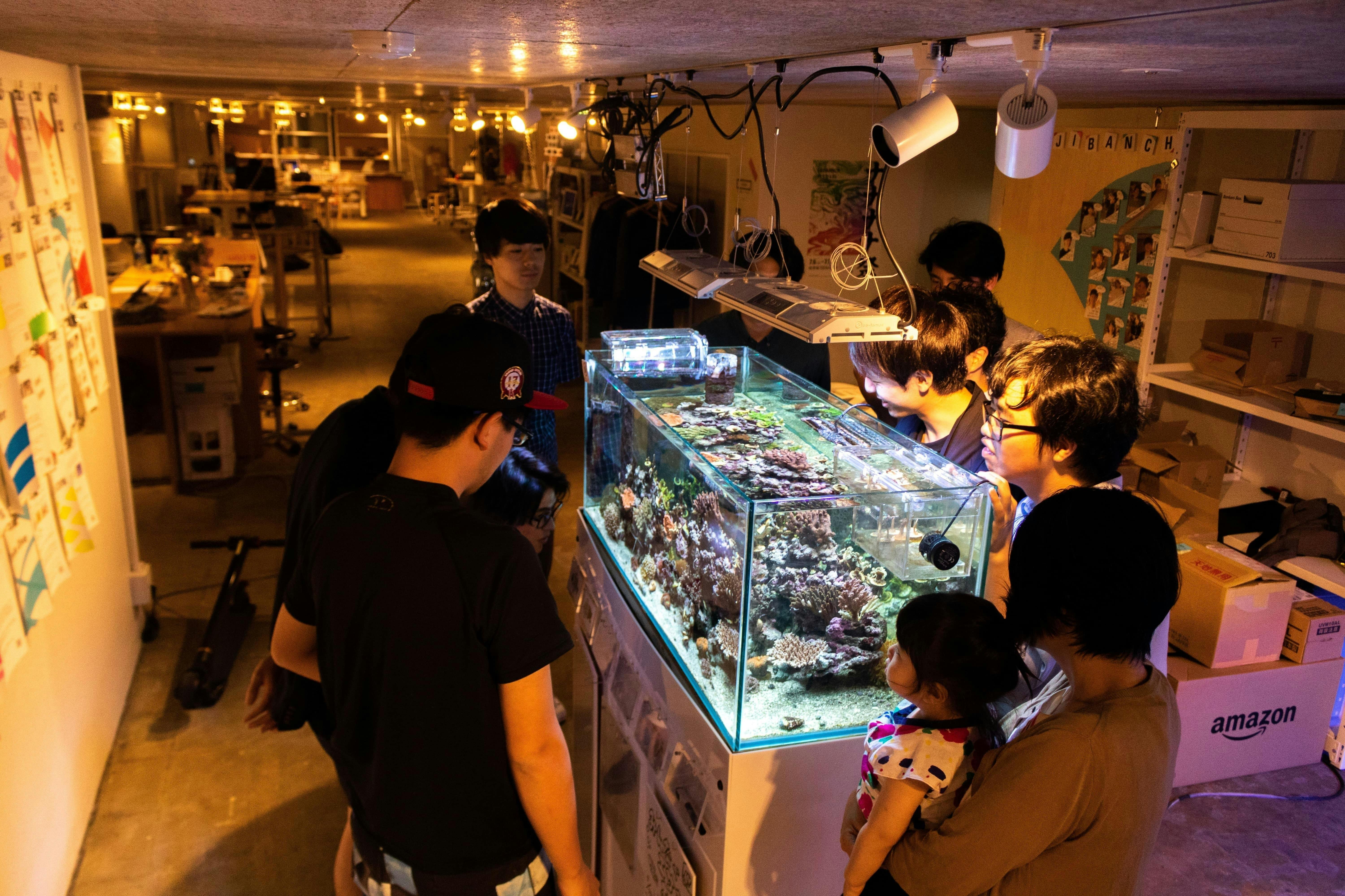 世界中の国々で決めた環境保全指針だと海はダメになってしまう、、、ではどうするか?ということで僕らは陸上に海を再現できないか?ということを考えアクアリウム(自宅で魚などを飼育する趣味)に着目しました。また、もう一つのキーワードとなる「アクアリスト」ですが、これはアクアリウムをしている人を指すのですが、とっても面白い方々なのです。
