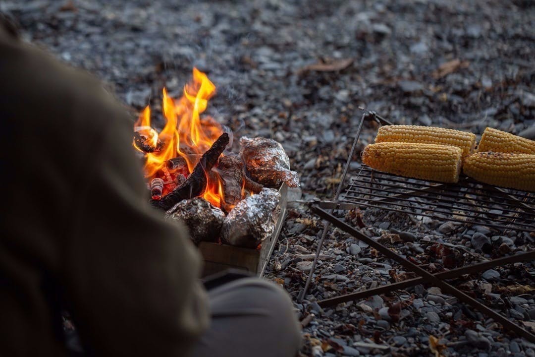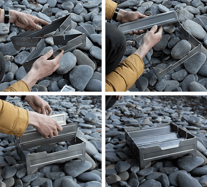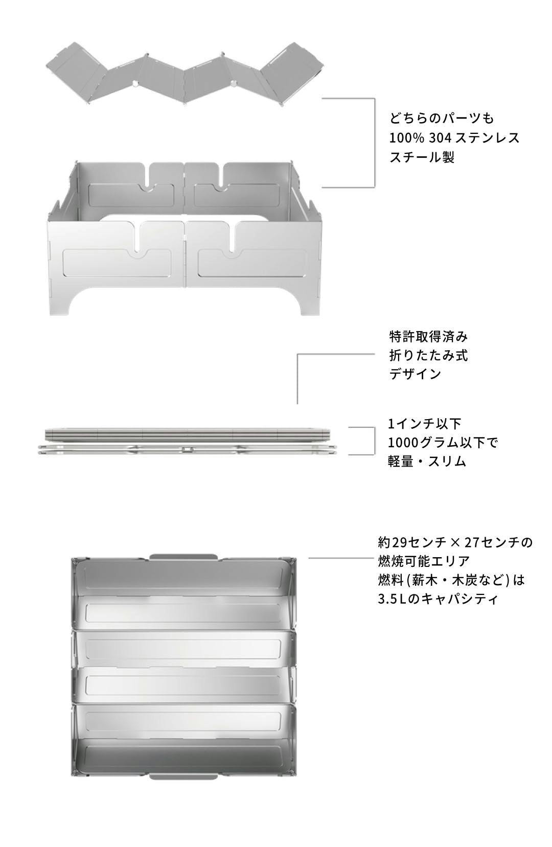折りたたんで収納できるポーチが付属。コンパクトに持ち運べるので、キャンプファイヤーをもっと簡単に、より身近なものにしてくれます。