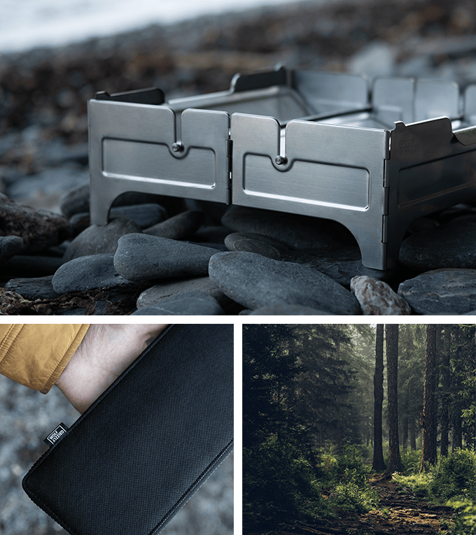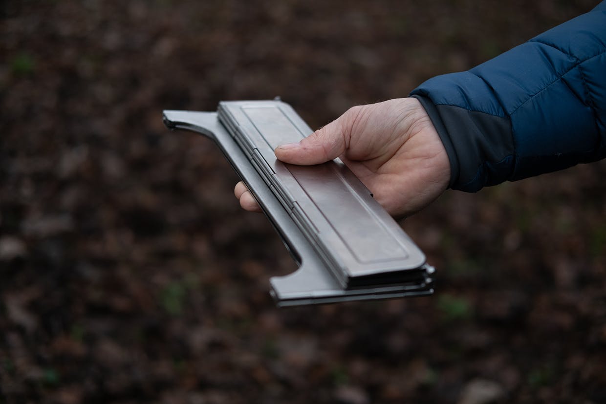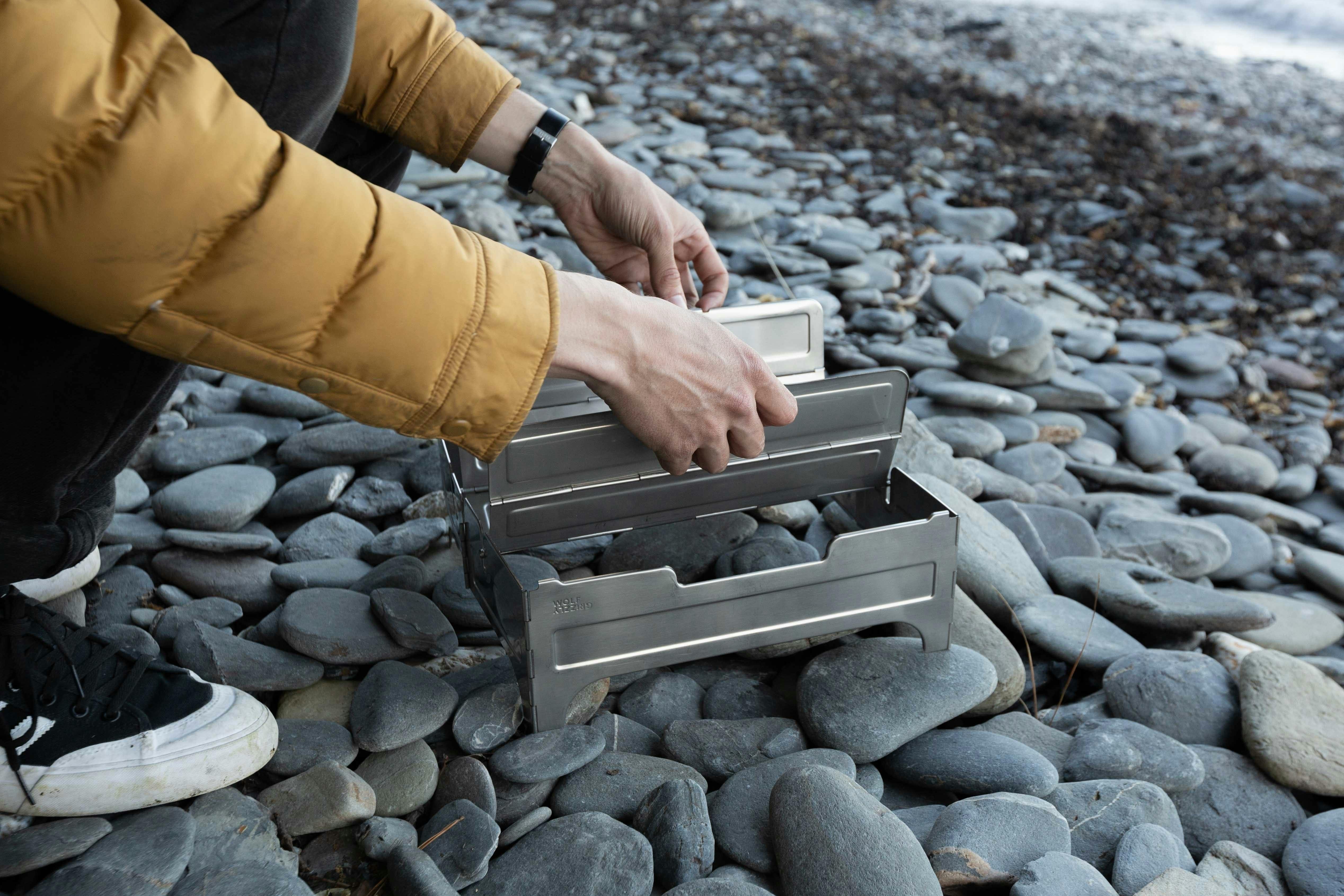 Grill M1 は、FIRE SAFE同様、コンパクトでポータブルな100%ステンレススチール製のグリルキット。グリルバーベキューをより身近に行えるプロダクトです。セットアップ簡単・高さ調節可能で、スリムでミニマルな見た目でありながら耐荷量は15kgを超えています。