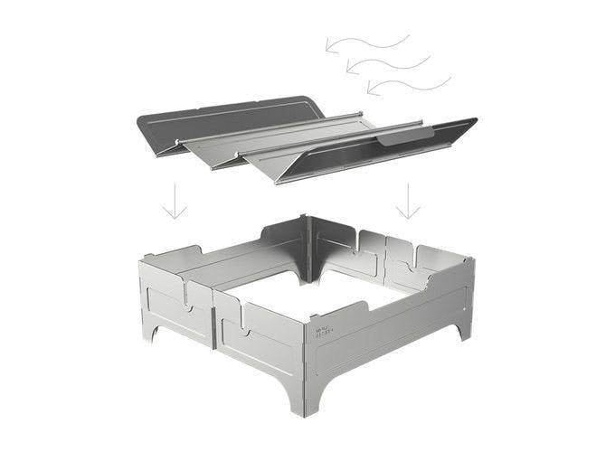燃料の受け皿になるパーツ部分は設置するとギザギザな波型になります。この波状のパーツが燃料との間にスペースを生み出し、空気を取り入れるためのエアフロー(空気の通り道)となることで、効率のいい燃焼を実現します。