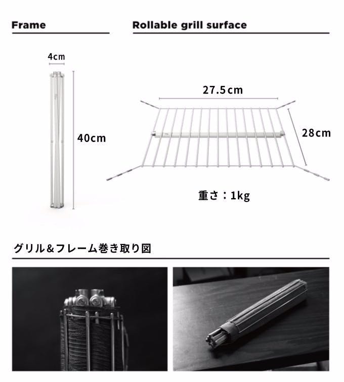 グリルは開閉式のフレーム部分と、巻き取り式のグリル部分の2パーツで構成されています。