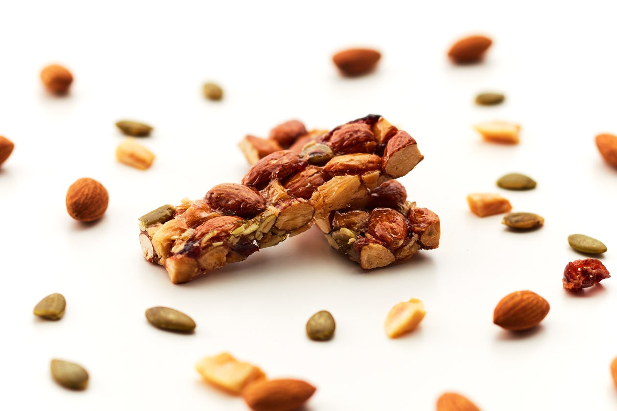 全ての工程を経て完成した、アーモンドバー。まず口に入れてそのこだわりの食感を確かめてください。