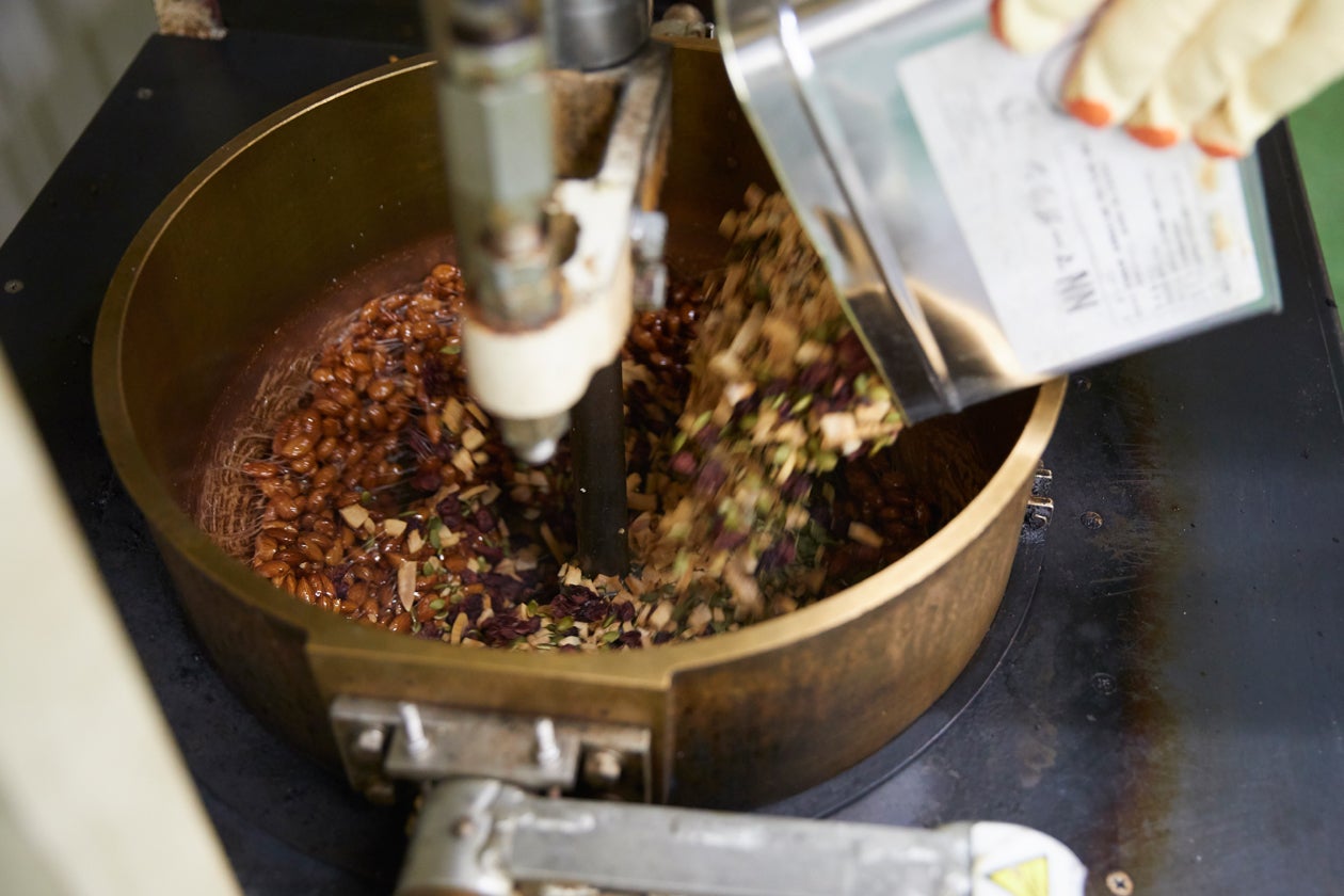 アーモンドバーのコンセプトは「良質な素材の味がダイレクトに伝わること」。そのために、アーモンドやほかの素材をまとめる水飴には香料を一切、混ぜていません。砂糖の比率を変えたり、原料を入れる順番を変えたりと、水飴づくりだけで20種類以上、水飴と素材を混ぜ込む際の温度とタイミングは100回以上の試行錯誤を繰り返して決めています。