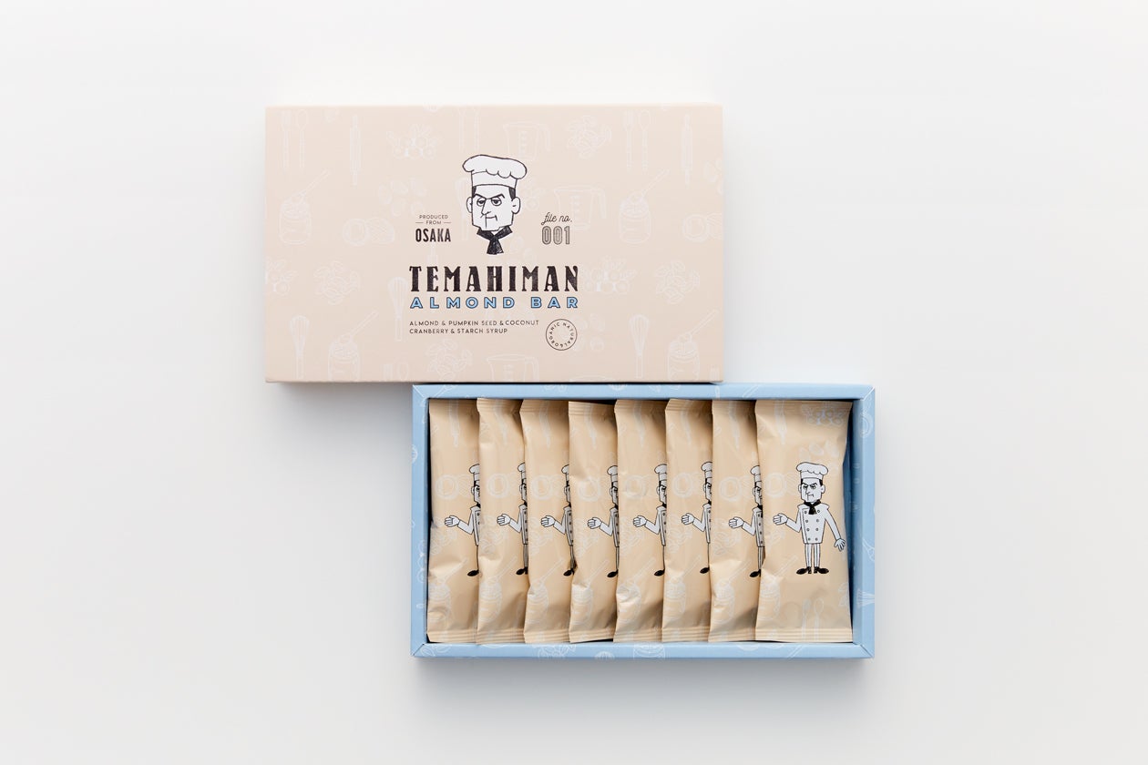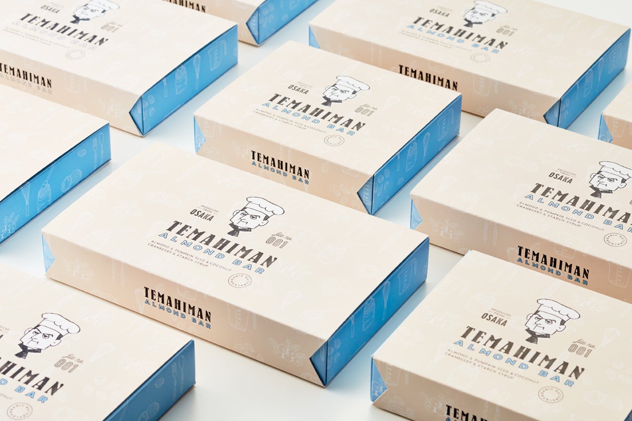 “手間暇をかけてつくる職人”という意味を込めて『TEMAHIMAN』という名前が生まれました。そして、このブランドの主役となる職人さんを愛してもらうため、パッケージには木谷さんをモチーフにしたイラストのキャラクターをしつらえました。受け取った人が喜び、渡してくれた人に“ありがとう”と伝えたくなる、上品で親しみのあるパッケージデザインに仕上げています。