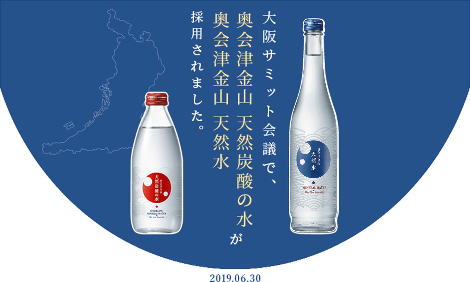 そして大切な「やわらぎ水」としてご提供するのは、なんと、先日のG20大阪サミット、先のG7伊勢志摩サミットでVIPに供された『奥会津金山(かねやま) 天然炭酸水』です。