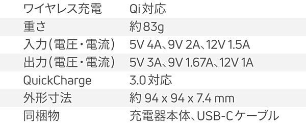この 「Futura X Wireless Charging Pad」はQuickCharge 3.0対応、最大15Wで急速充電が可能です。