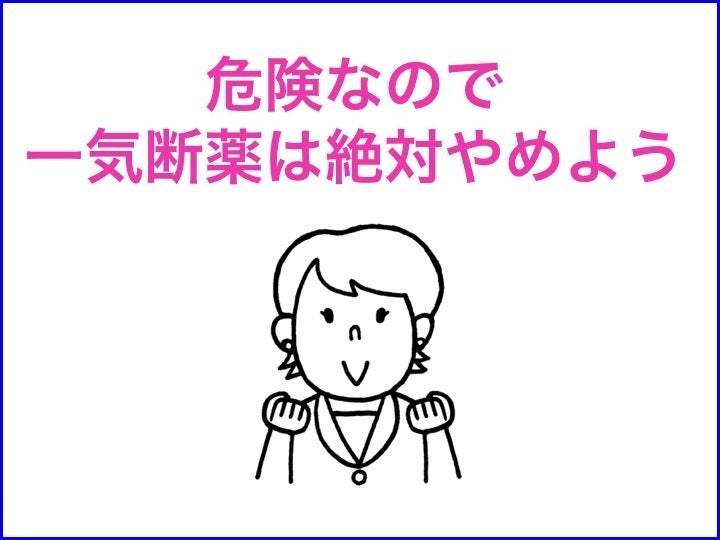 1 慎重な予定を立てる 2 薬の単位を見直す 3 離脱症状に耐える 4 自分を少し変える 5 回復を信じて待つ