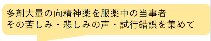 精神科では患者が抱える多剤大量処方の苦しみについてなかなか理解されません。適正な薬について理解のない精神科医が少なくないのです。私たちは活動を通じて、医師に向精神薬についてきちんと理解していただきたいと思っています。