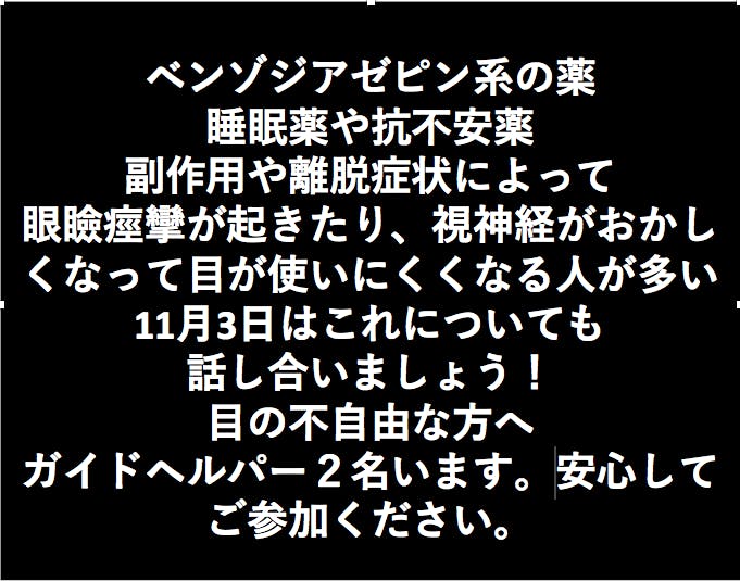 終了まであと2日です!ベンゾジアゼピンによる眼瞼痙攣をはじめとする見え方の異常の問題も話し合います