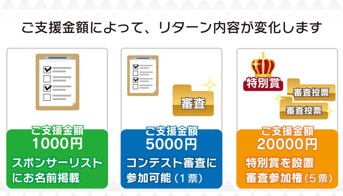 一定額以上のご支援を下さったスポンサーの方は、コンテストの審査に参加可能!