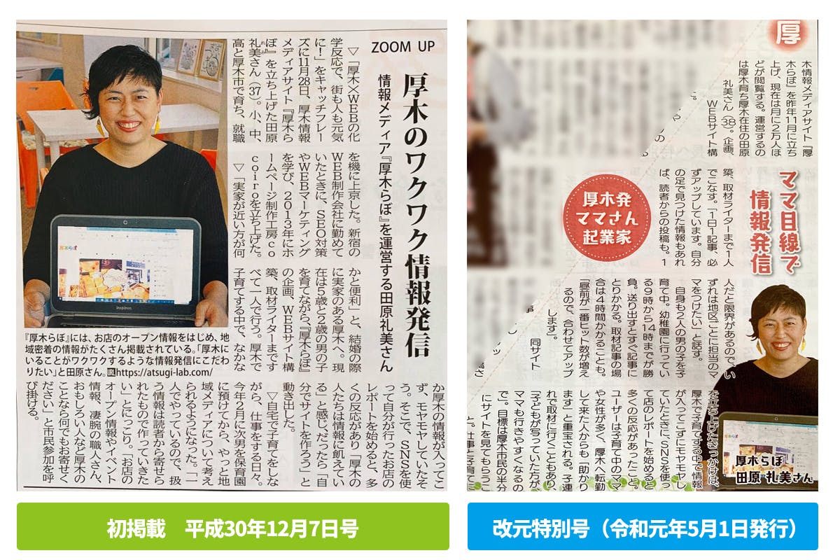 また、タウンニュース厚木版にも二度取り上げていただきました。