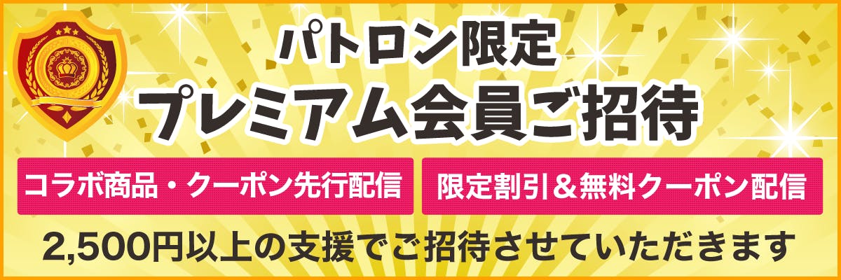 また、2,500円以上の支援をしてくださったパトロンの方は、プレミアム会員へご招待させていただきます。※年会費不要 ※お店向け・企業向け支援を除く