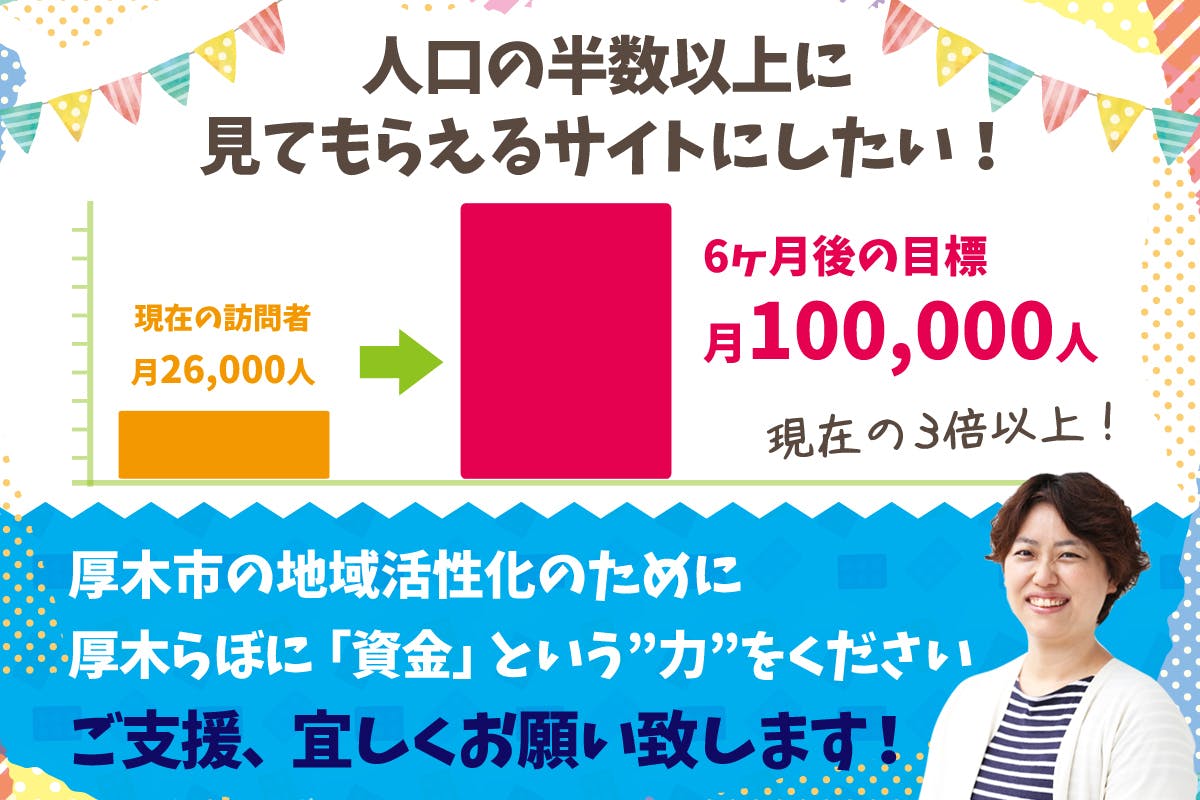 最後に:厚木市の人口の約半分 約10万人が毎月閲覧するサイトにしたい!サイトを通してもっと厚木地域を活性化したい!ご支援、宜しくお願いいたします。