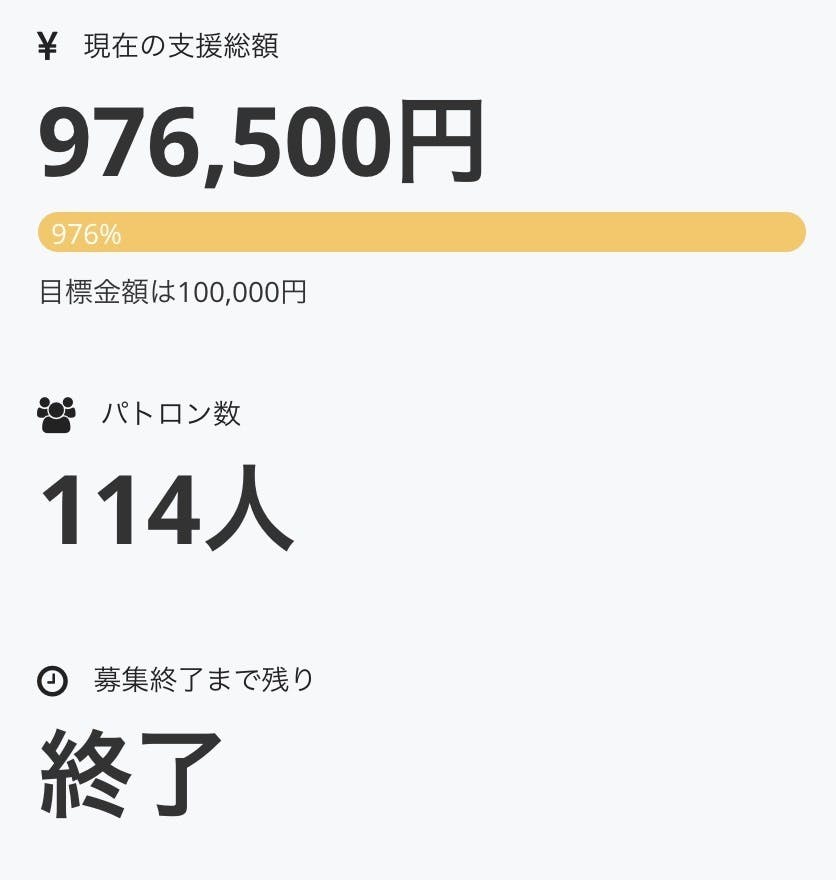 約1年前のCAMPFIREキャンペーンでも100名以上の方から、976%の支援をいただきました!