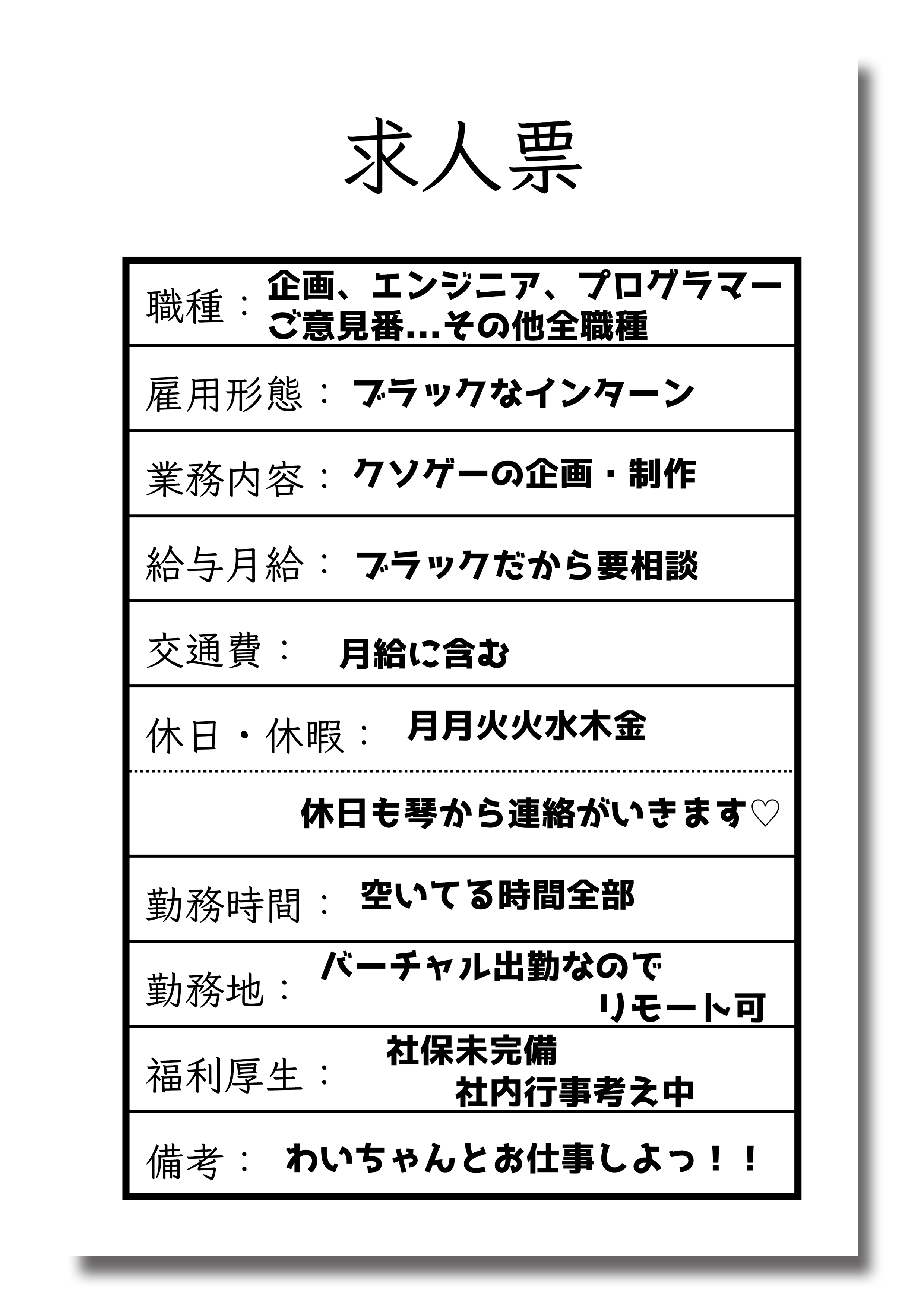 ・2週間インターン参加券 ~みゆりと一緒にクソゲーを作ろう!~