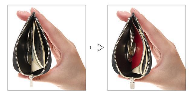 コインケースの中の構造をシンプルにする事で、使う時の面倒を無くしました。1枚の仕切りを付けるだけで、中でお札とコインを分けて収納。カードで支払いの時は、ファスナーを開けずにサッと出し入れできます。