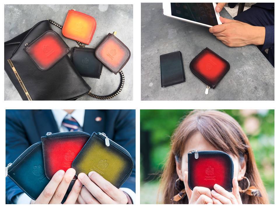 栃木レザーに刷毛を使った手染めによるグラデーションが特徴で、しっかり刷毛ですり込むことにより、半年後、1年後の色の変化や風合いを楽しんで頂けます。