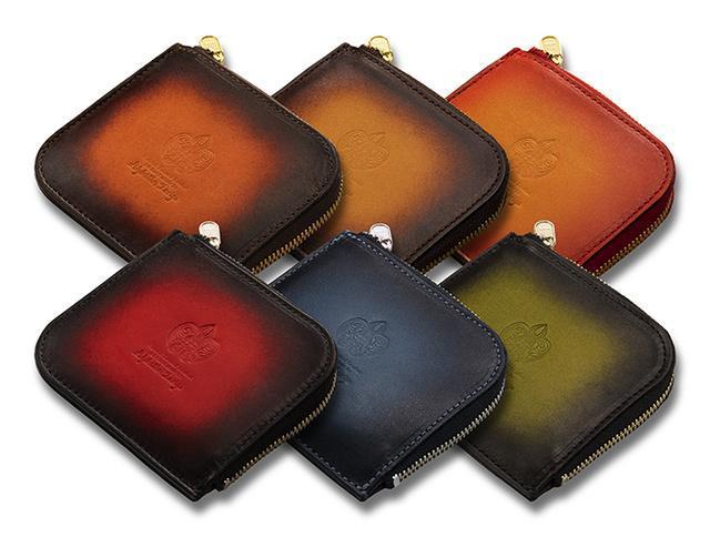 ファスナーの色も妥協する事なく、メインカラーであるぼかし染めに自然に馴染む色を選択。この繊細な部分にもランチウォレットの造形美への拘りを表現しています。