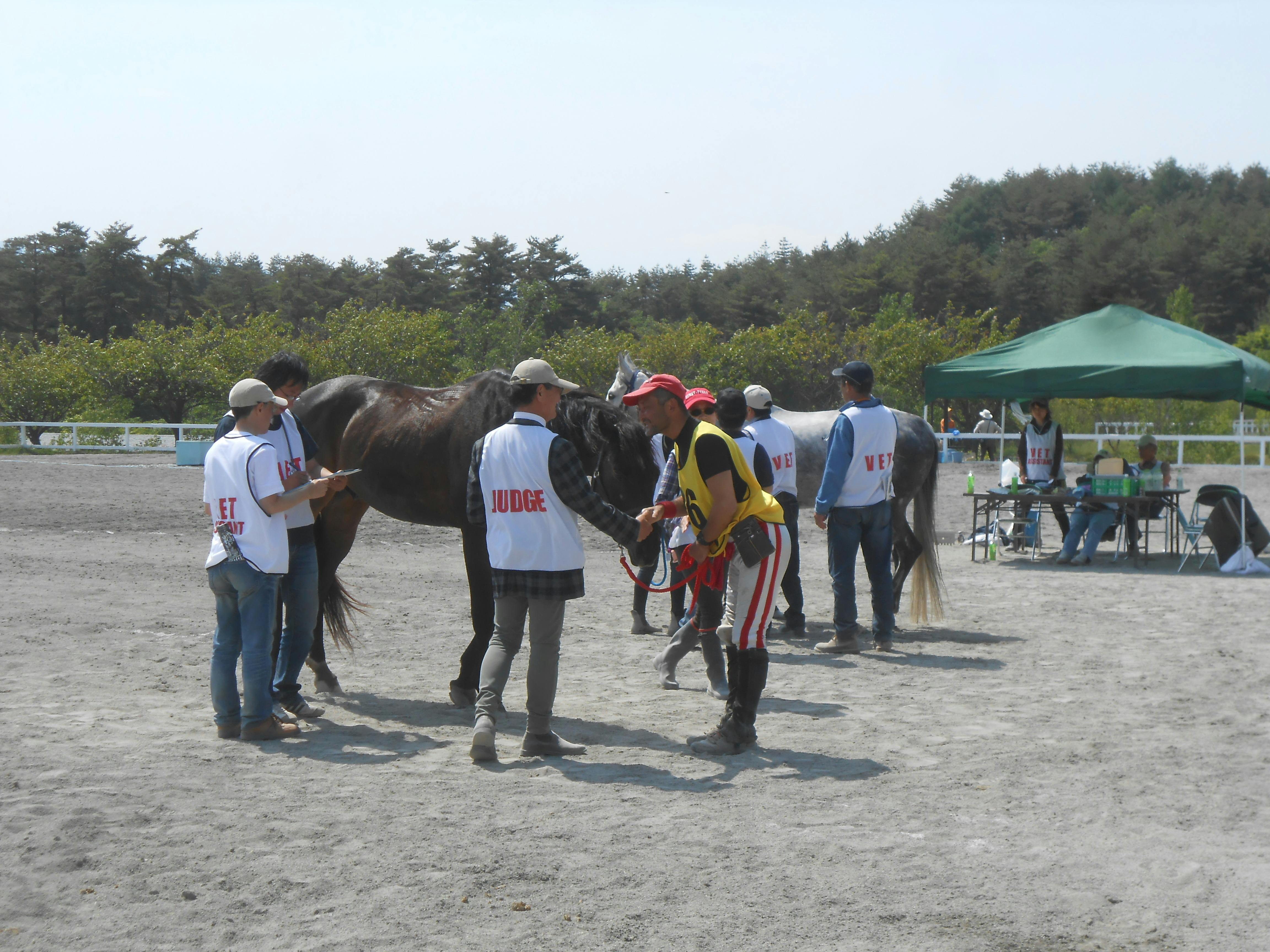 ただし、早ければ何でもいいという訳ではなく、馬が著しく疲弊した場合は失権します。例えていうと、人間のマラソンなどは、ゴール後にランナーが失神しても一番でゴールすれば優勝ですよね?馬のエンデュランスの場合はスタート前、途中区間ごとのゴール後と最終区間のゴール後に、専門の獣医師からルールに即した細かい馬体チェックを受け、馬に問題がある場合にはその場で失権になります。一番でゴールしてもその後の検査でNGなら失権です。