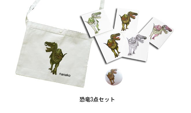恐竜だらけのセットです。恐竜好きにはもちろん、サコッシュには名前も入れることができますので甥っ子、姪っ子にプレゼントしたら大喜び間違いなし!(名前を入れるのは任意です)