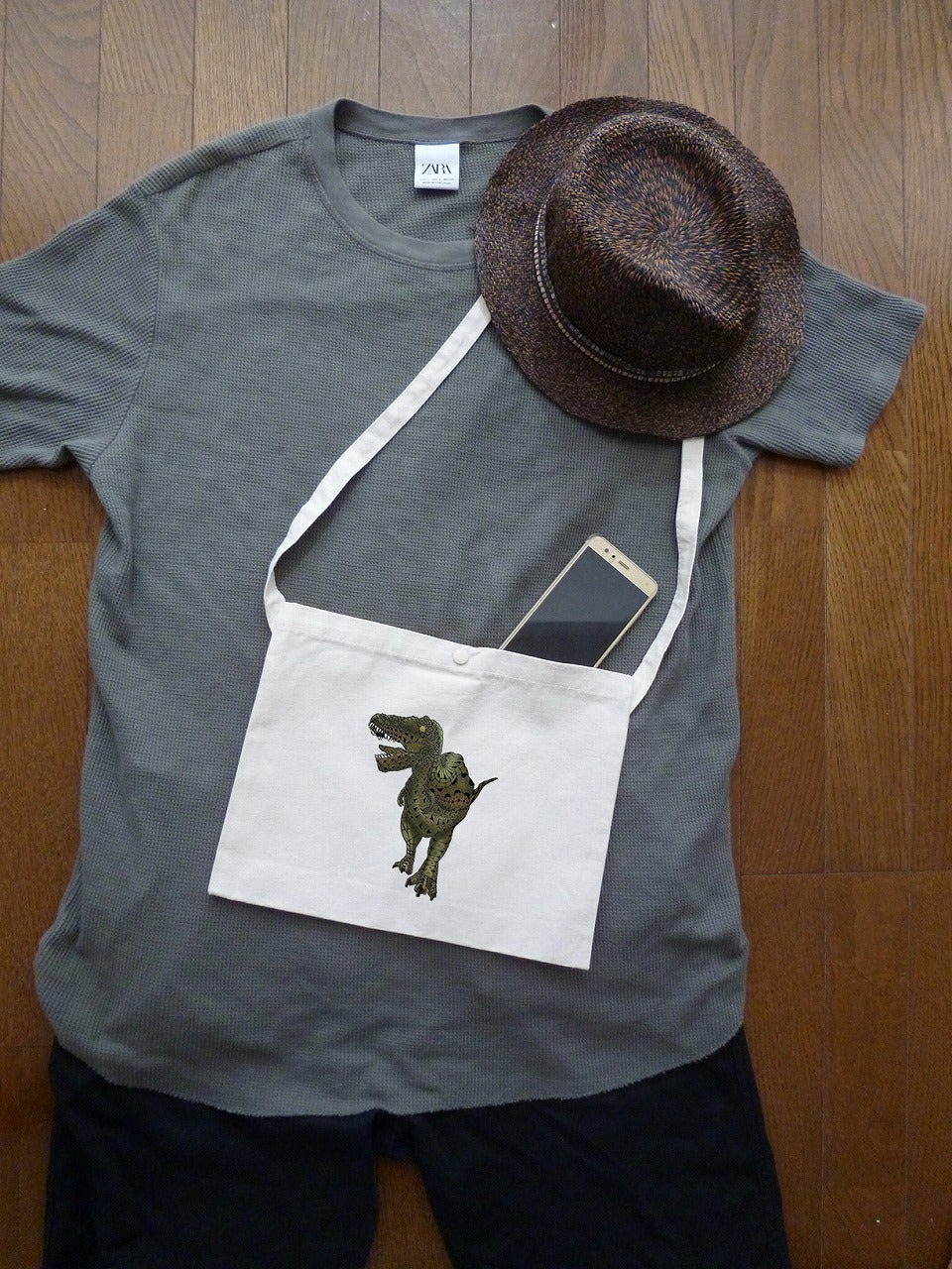 展示会で一番人気だった恐竜サコッシュです。斜め掛けバッグでカジュアルに着こなせます。キッズから大人まで、おしゃれに身に着けられます。(写真のサコッシュ以外は含みません)