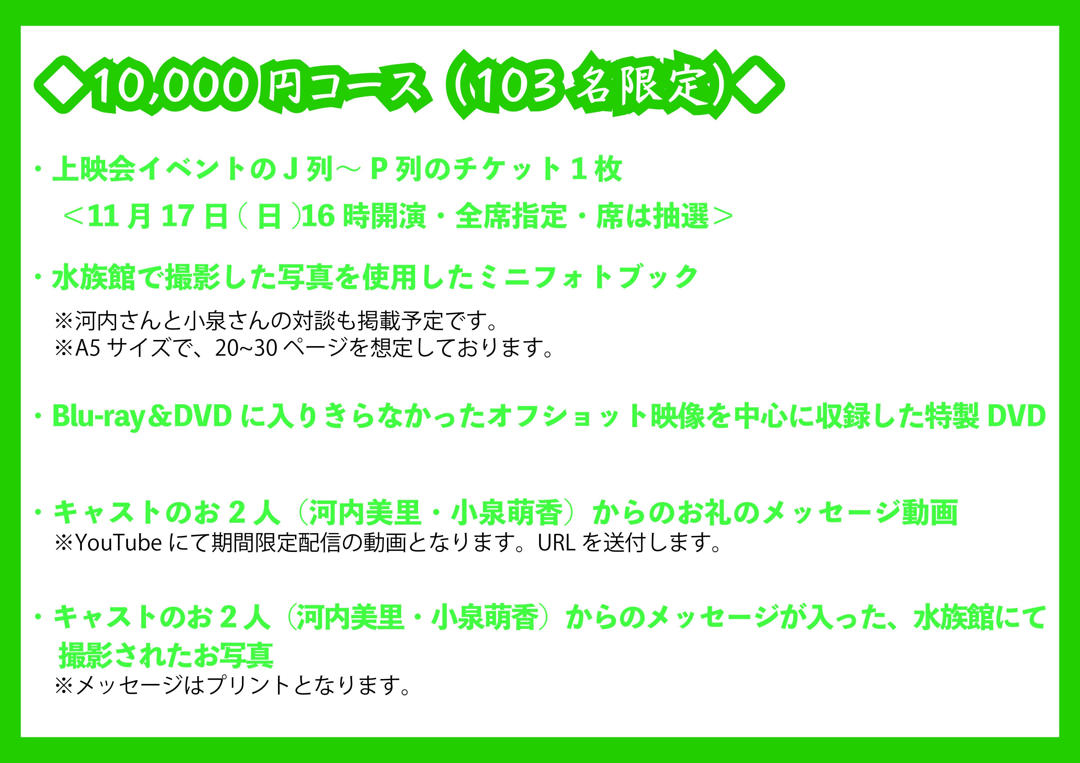 ・上映会イベントのチケット以外のリターンアイテムは、どのコースも全て同じ物・同じ内容となります。