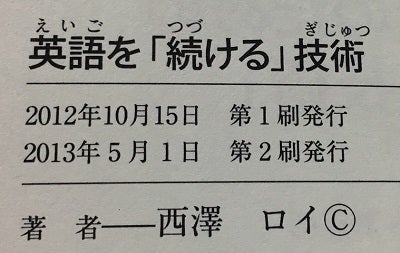 2012年10月発行の『英語を「続ける」技術』は、現在の年間売上状況を勘案しますと、在庫を整理し、今後は重版未定とさせていただきたく存じます。」