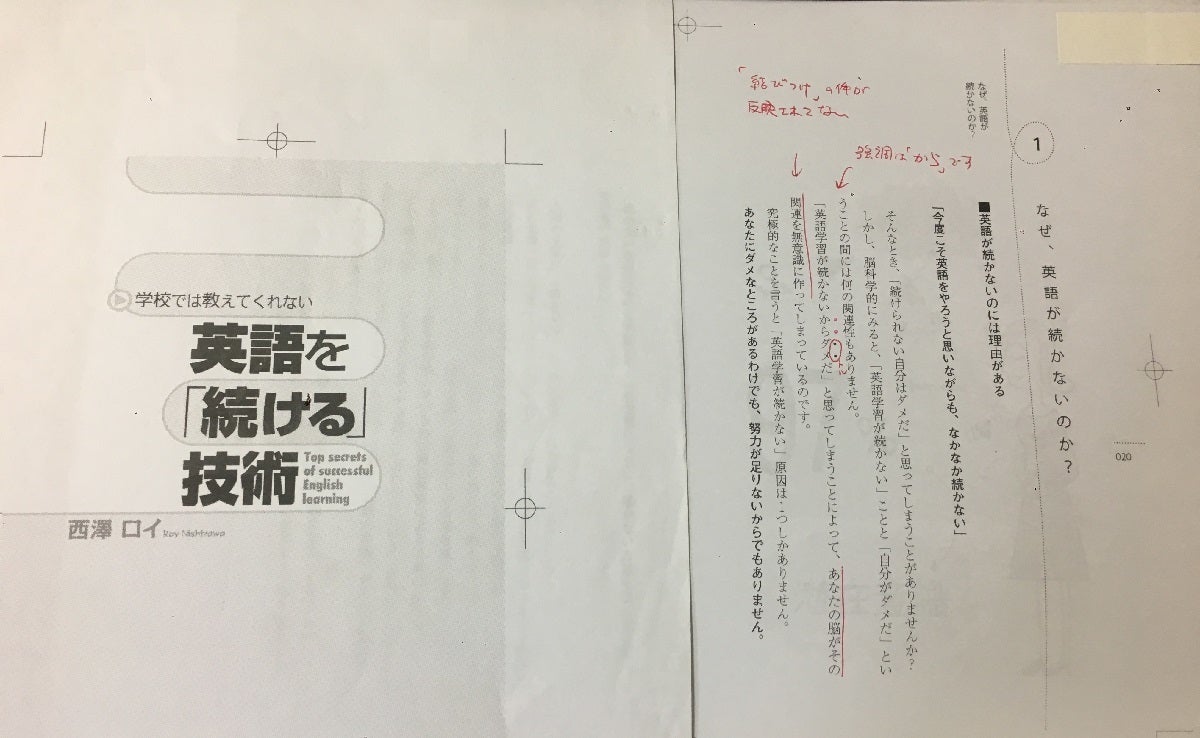 100冊と同じ特典に加え、西澤ロイが赤入れした『英語を続ける技術』の最終ゲラ(非売品)をご提供いたします(オークションやメルカリなどへの出品を禁止します)。