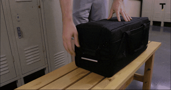足元を変えたいときには、タスキンキューブ2があなたの味方です。特別な裏地がついた通気性の良い靴収納スペースがあるので、バッグに入っている他のものを汚すことはありません。