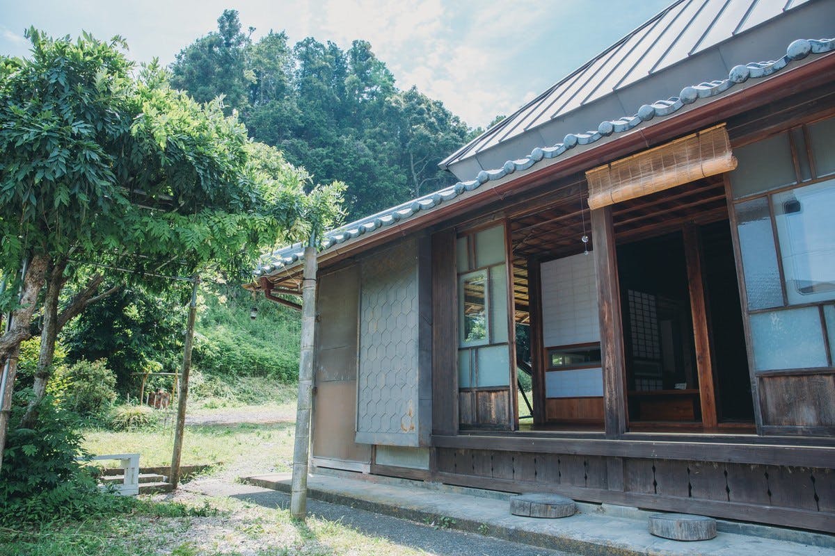 掛川駅から車で約20分ほど南に走り、山と田んぼ、そして茶畑に囲まれた場所にゲストハウスはあります。
