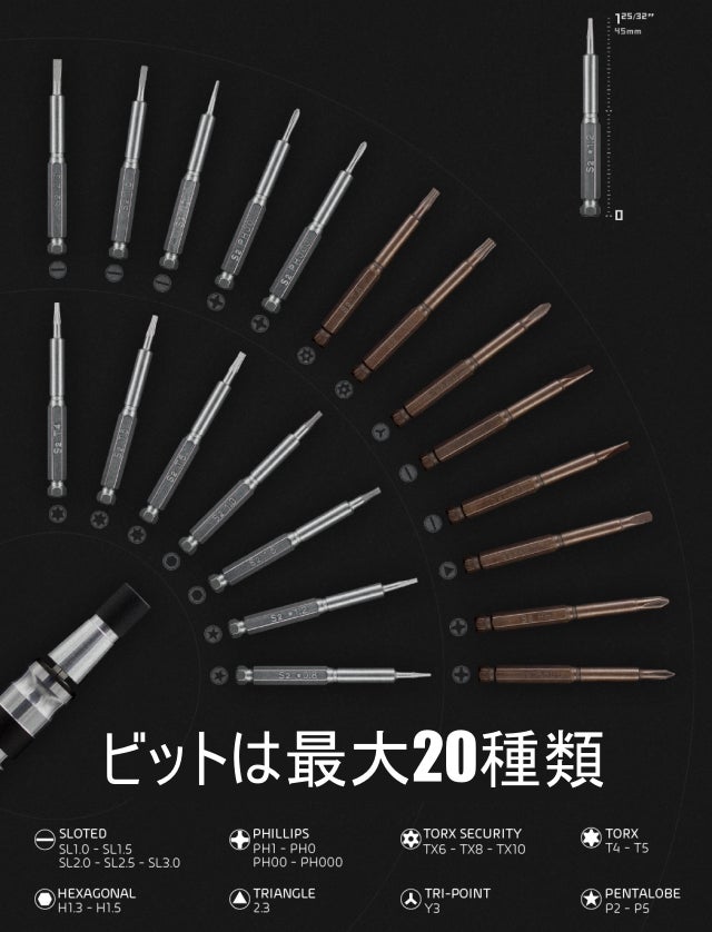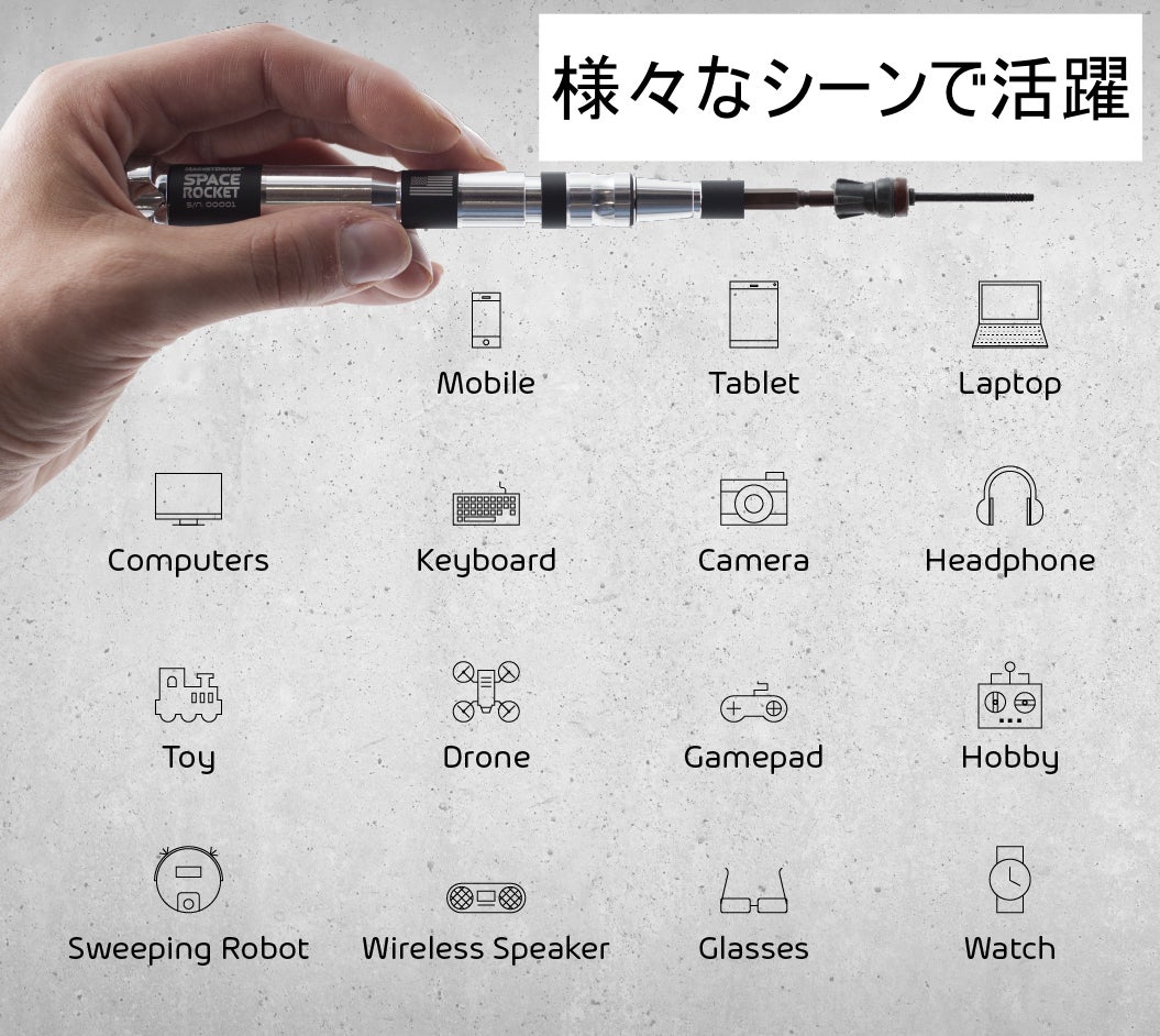 ・ビットの種類は最大20種。携帯・パソコン・カメラ・眼鏡・時計・おもちゃなど様々な用途で活躍