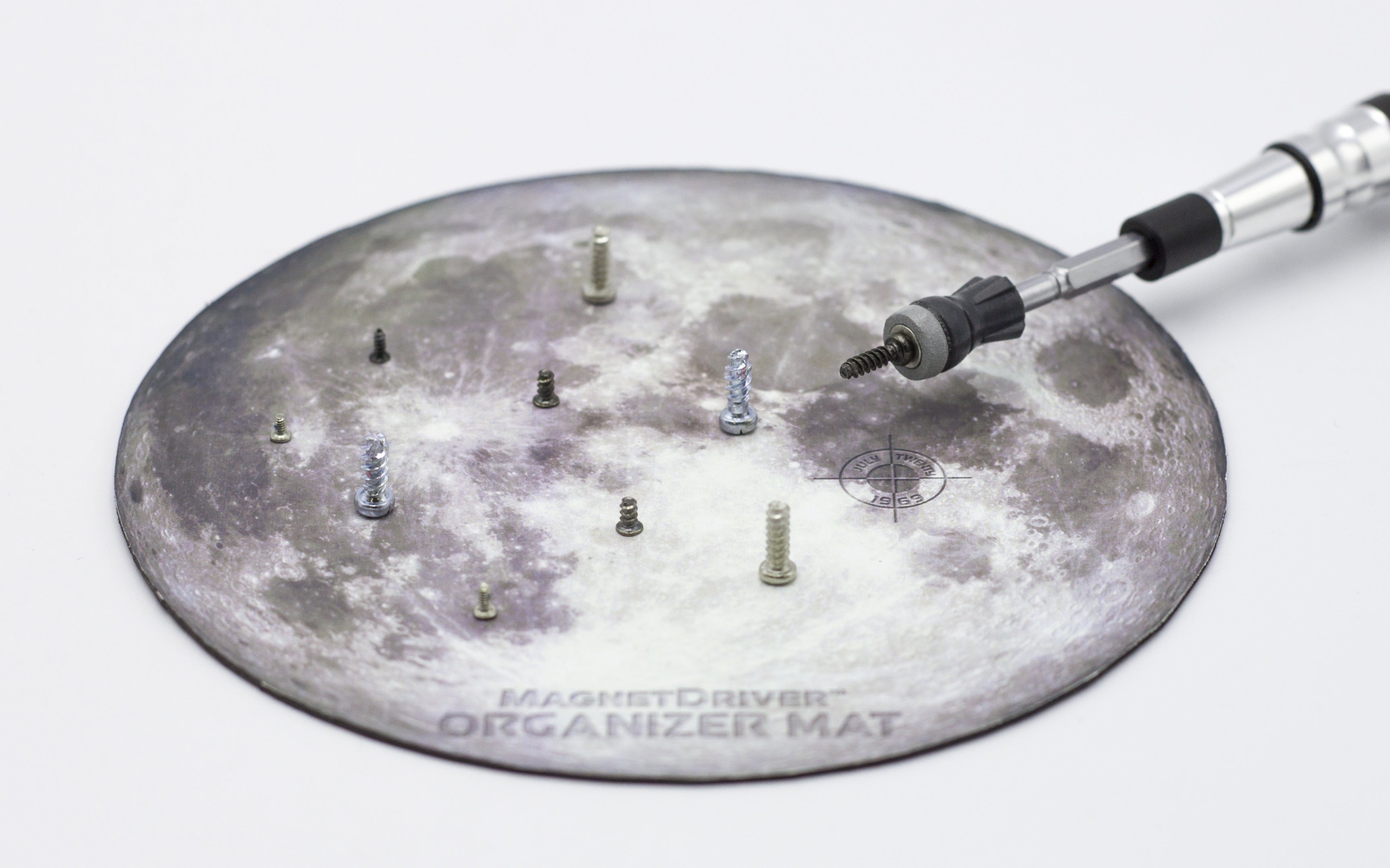 取り付けるねじ、もしくは取り外したねじを月の形をしたマグネットマットに置くことで転がりを防止し、ねじの紛失を防ぐことが出来ます。