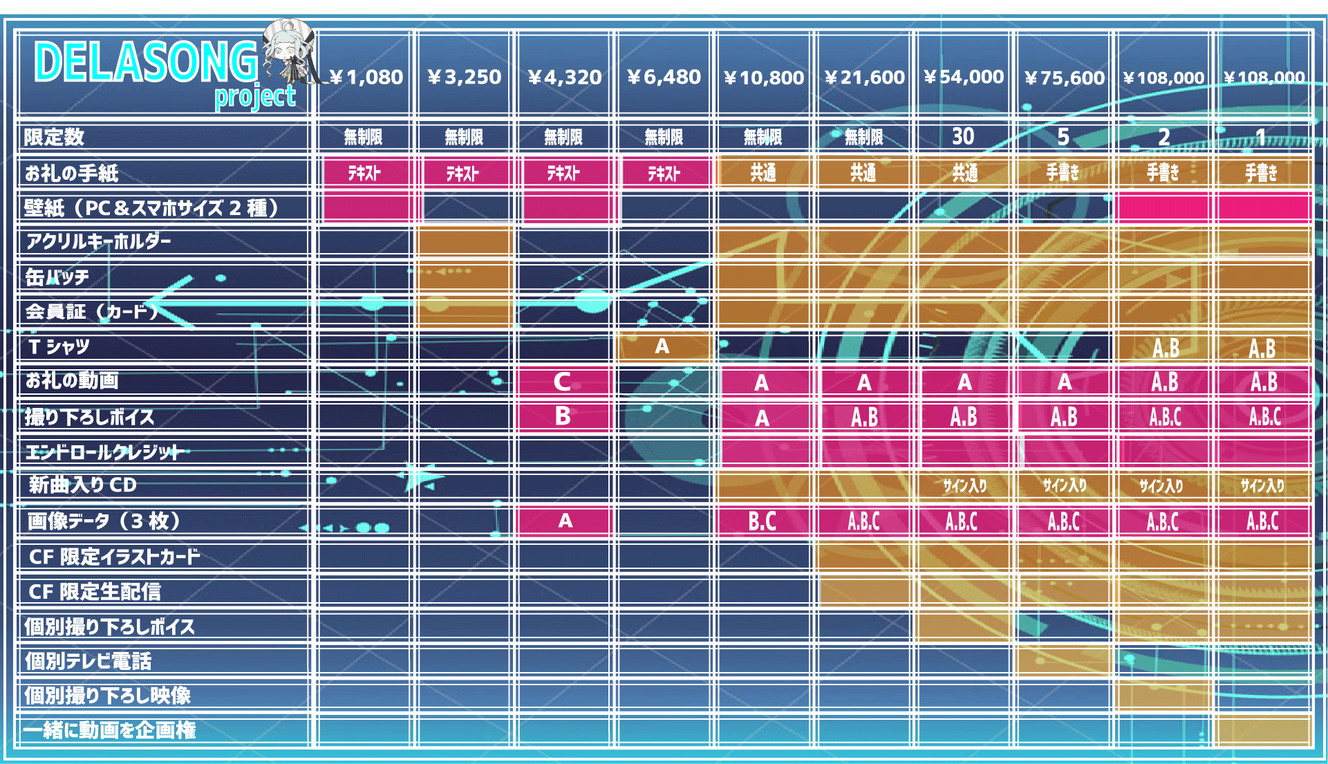 A:グッズや動画など全て本プロジェクト限定となり、一般発売の予定はありません。
