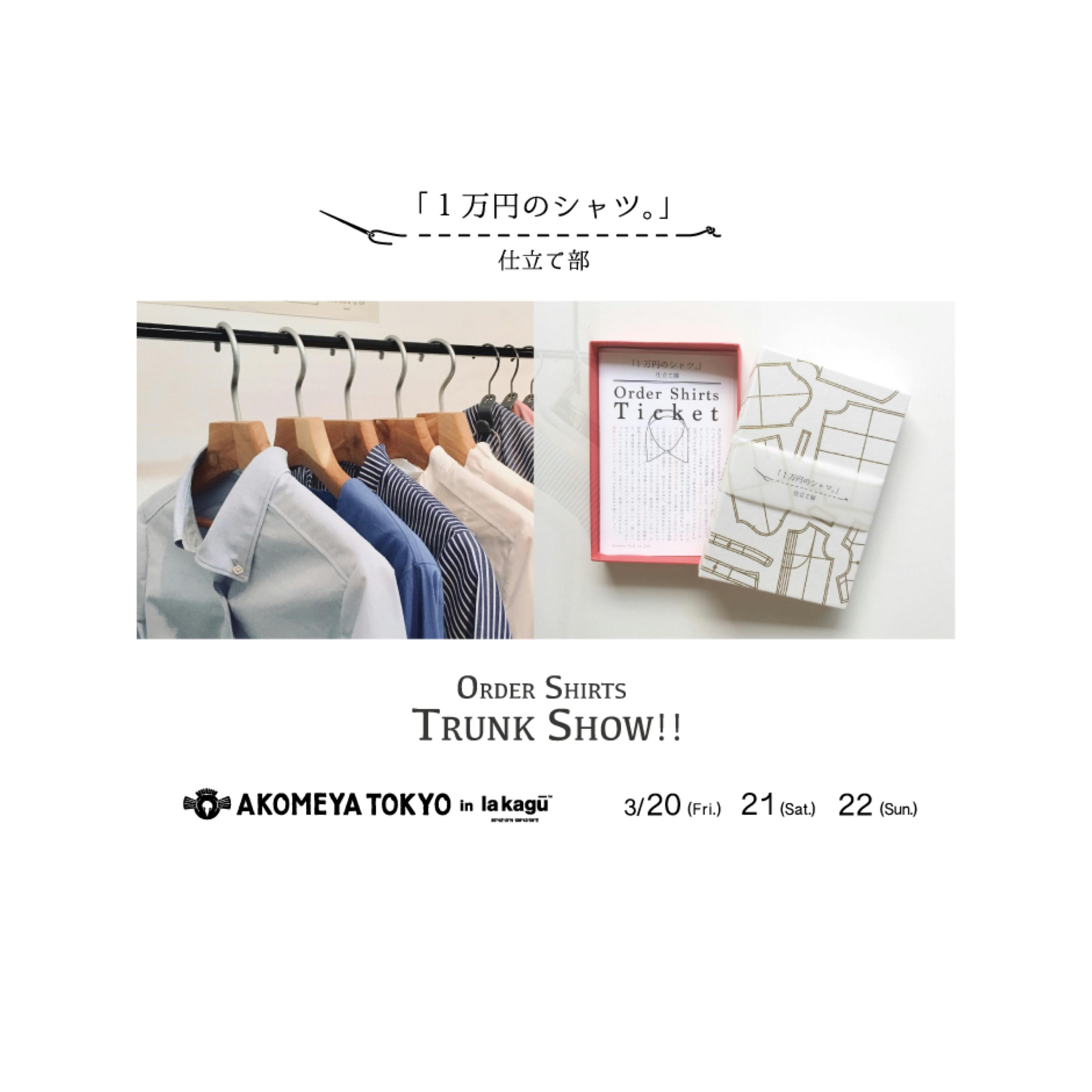 2020/03/20 07:58本日3月20日(金)から22日(日)まで、AKOMEYA TOKYO in la kaguにて「1万円のシャツ。」採寸オーダー会を開催致します。イベントの自粛傾向が続いている状況ですが、手洗いうがいなど予防対策をしっかりとして、皆さまのお越しをお待ちしております。神楽坂界隈も桜が見頃となってきました。気分転換にお散歩がてら、是非お立ち寄り下さい。.......................................☆「1万円のシャツ。」採寸オーダー会☆3月20日(金)21日(土)22日(日)11:00〜20:00☆AKOMEYA TOKYO in la kagu新宿区矢来町67番地https://www.akomeya.jp/store_info/store/sinlakagu/ もっと見るイベント開催のご案内