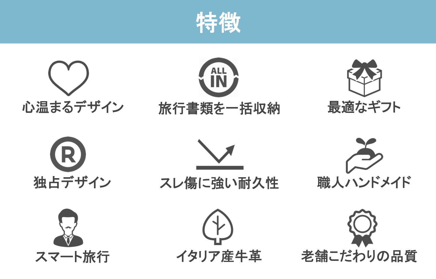 二人分のパスポート顔写真ページが開きやすい独自ポケット構造とバンド内側にさりげなく設けたペンホルダーが入国カードの記入時に非常に便利で、快適でスマートな旅行をアシストします。