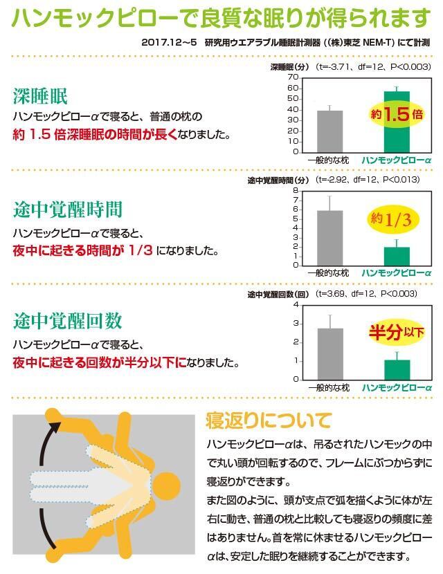 一般的な枕(そば殻)と、ハンモックピローαとで、睡眠状態を比較してみました。