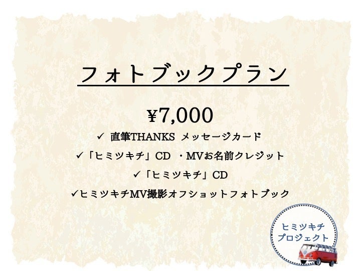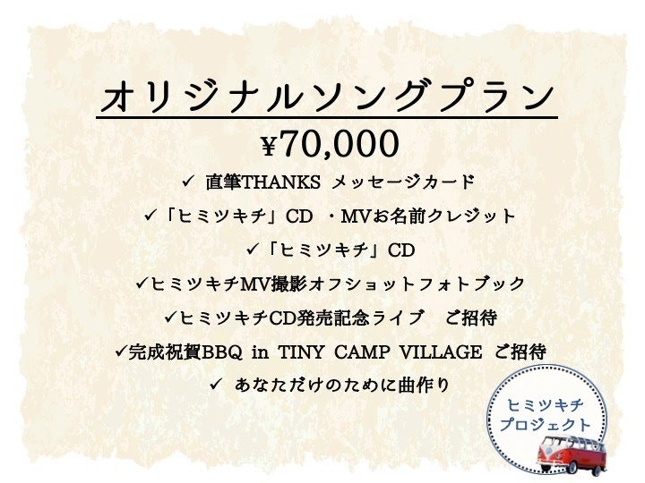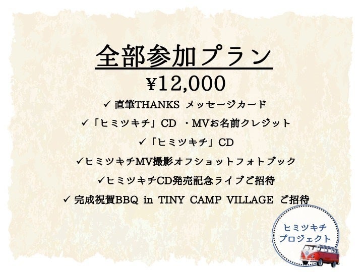「ヒミツキチ」楽曲自体をもっといいものにする、さらにたくさんの方に楽しんでもらえるプロモーションビデオを作成する、そのためには『ヒミツキチプロジェクト』応援サポーターの皆様のお力が必要になります。