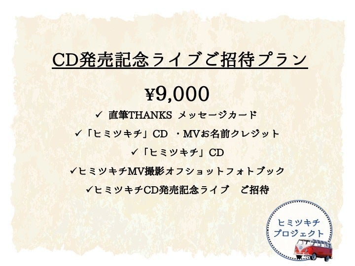 ②11月10日発売 ヒミツキチCDのジャケット&MVエンドロール SPECIAL THANKS 欄にお客様のお名前クレジットさせて頂きます。