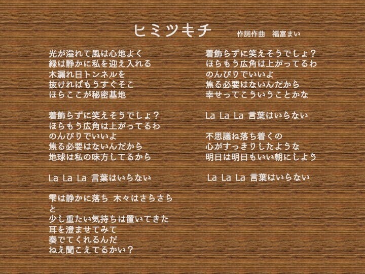 《ヒミツキチ歌詞》
