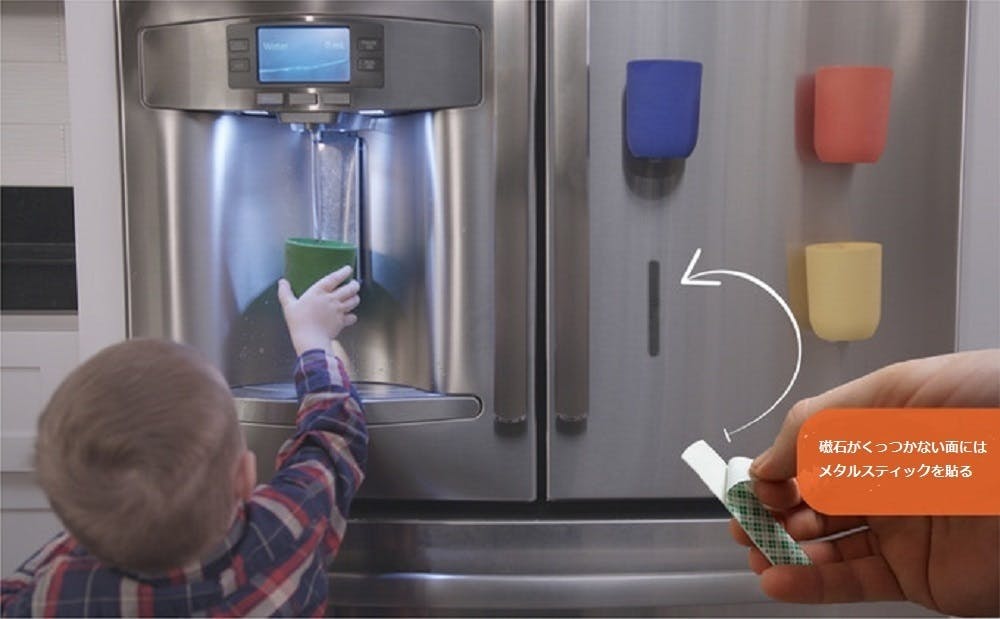 そんなときは、冷蔵庫にぴたっと貼れるマグネット付きコップを使ってみませんか?