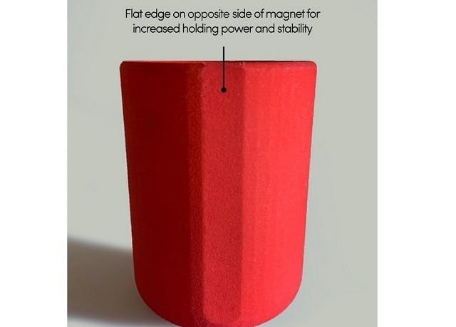 コップの側面にある空洞に細長いネオジム磁石が入っています(左)。